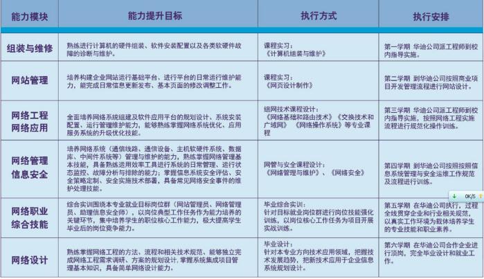四川华迪自2010年与公司合作以来,主要合作培养网络方向人才,员工经过定期的培训后,能够胜任网络管理员、应用工程师、信息安全师及网络设计师等等,其网络方向培养方式如下: