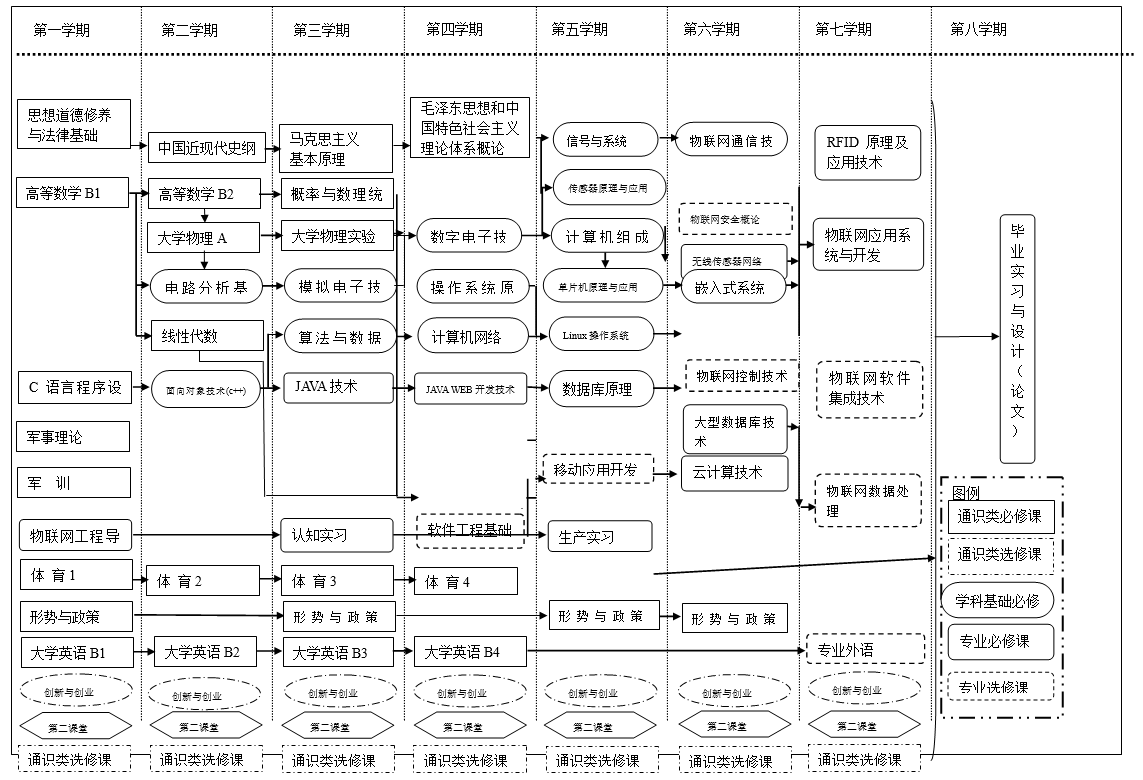 附图1 物联网工程专业课程修读顺序框图