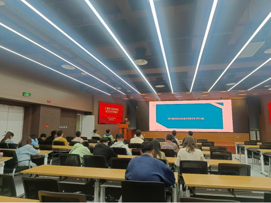 随后,鲁晔老师以“文献综述的写作方法”为题,从文献综述的概念、特征、查找、分类、结构来论述文献综述。首先简单介绍了文献综述的概念以及特征。除此之外,对查找时提出不同层面的查找方法和学术资源数据库介绍,并在文献整理方面从不同层面的整理方法给出建议。其次,对于论文了论文的整体结构详细展开,在结构中,包含摘要、引言、正文、结论。具体论述了综述各部分的写作方法以及注意事项,并对各个部分引用论文的例子详细说明,验证了总结的有效性。最后,对文献综述中常见的问题从相关性差,缺乏重点和虚构创新三个方面展开论述并分析原因。
