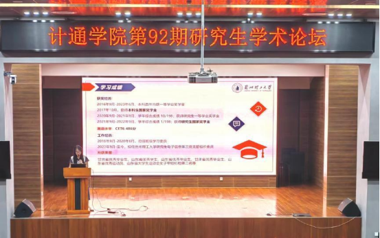 2023年6月1日晚7:00,计算机与通信公司在图书馆106举办体育平台官网第92期学术论坛。本次学术论坛,邀请公司2022年国家奖学金获得者钱一诺、梁浩鹏、周伟煜三位同学作学术报告,公司2022级全体研究生参加了本次活动。