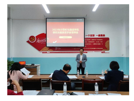 9月26日下午,计算机与通信公司研究生国家奖学金答辩会在舒卷楼106党员之家顺利举行。出席本次活动的评委有:公司党委书记高国礼、公司党委副书记来明展、副经理李晓旭、教师代表何继爱、研究生辅导员刘鹏程、其中包括3名员工代表评委陈宣、熊咏微、李环环,会议由计算机与通信公司研究生辅导员刘鹏程老师主持。