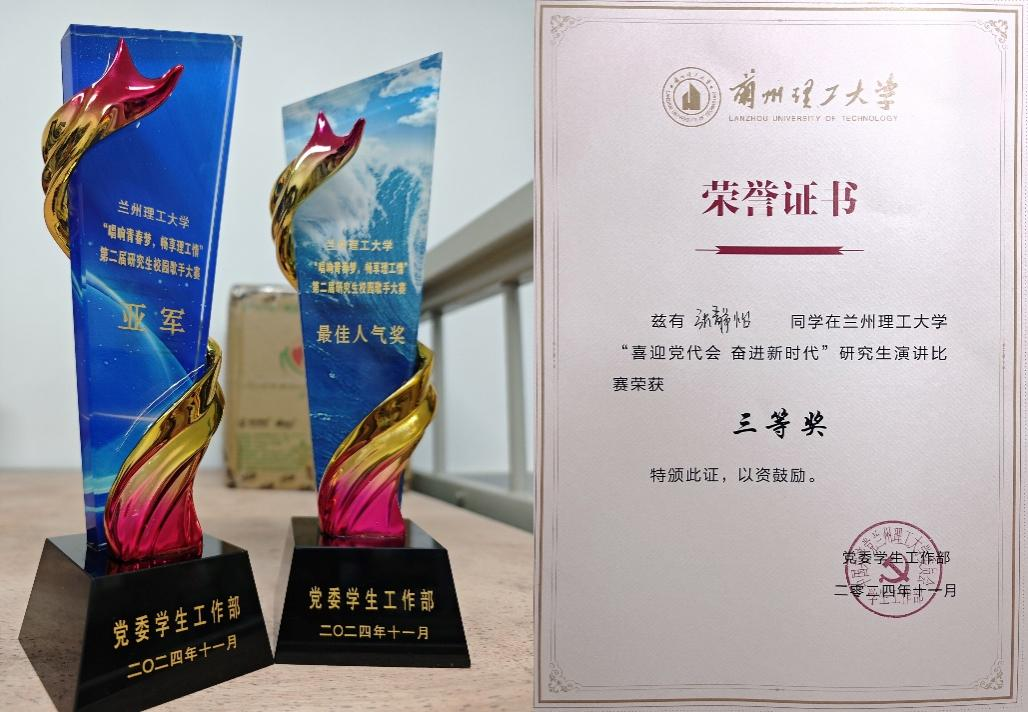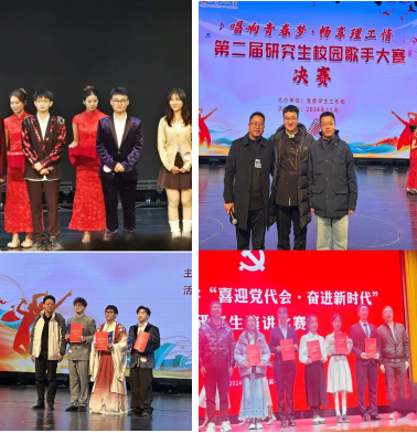 在“唱响青春梦·畅享理工情”第二届研究生校园歌手大赛和“喜迎党代会,奋进新时代”主题演讲比赛中,新生们更是展现了多才多艺的一面。潘刚同学获得研究生歌手大赛二等奖、周新宇同学获得歌手大赛四等奖、张子洋同学获得歌手大赛优秀奖,张静怡同学在“喜迎党代会,奋进新时代”主题演讲比赛中喜获三等奖。他们的精彩表演和深情演讲受到师生们的一致好评,充分体现了我院学子们的综合素质稳步提升。