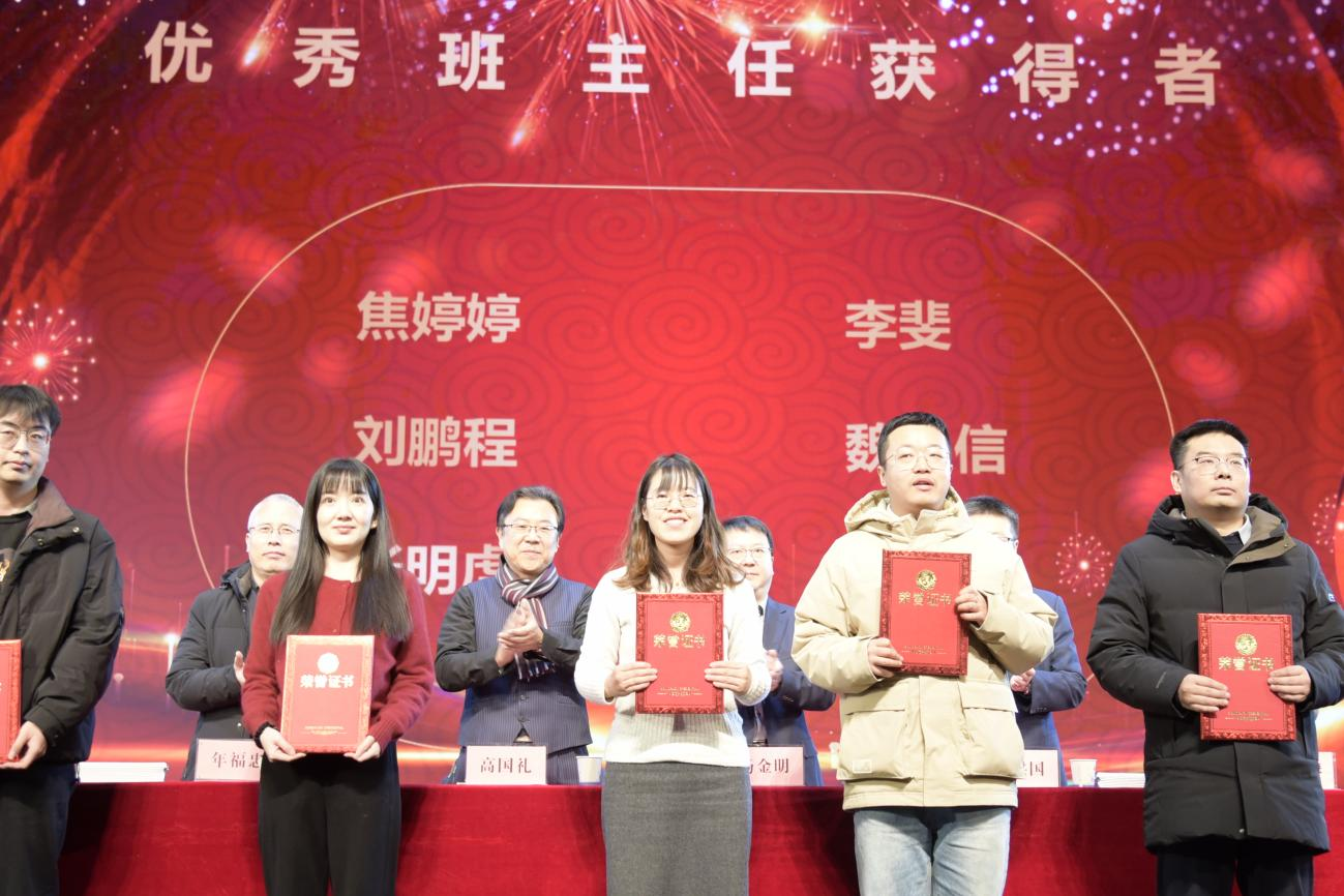 表彰大会上,与会领导宣读了2023-2024学年校、院两级学风建设相关表彰文件,为获奖集体和个人颁发荣誉证书。最后为2024年新入职公司教师佩戴校徽。