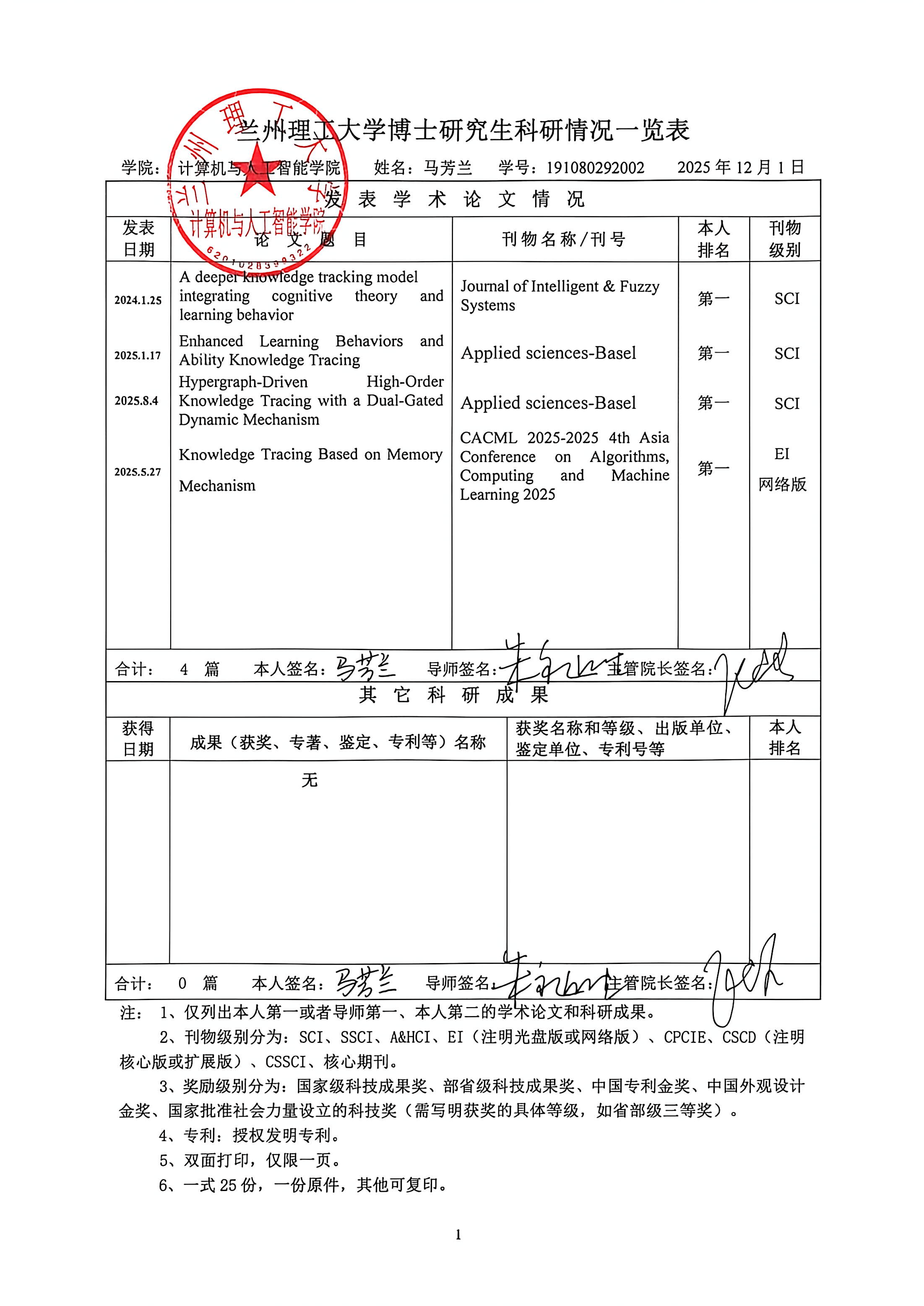 根据《体育平台官网学位授予实施细则》要求,博士学位申请人申请学位前需在导师指导下完成一定科学研究工作,取得与博士学位论文相关的科研成果。现将公司5名2025年秋季学期博士学位申请人攻读学位期间完成的科研成果清单进行公示,接受广大师生监督。如有不实异议请实名按以下方式向公司反映。