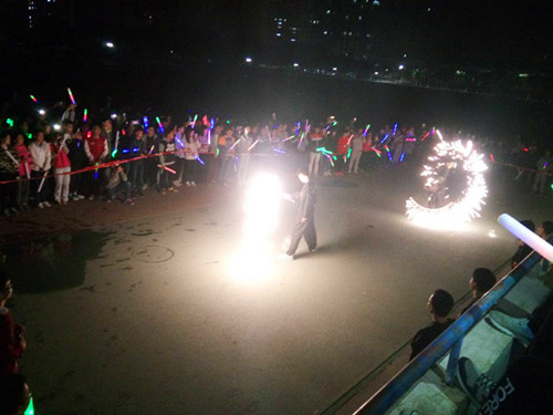 荧光夜跑,挥洒青春 ——公司举办“荧光夜跑”活动 “烟火舞”双截棍表演 大家挥舞荧光棒一,一起奔跑 为了展现工大学子的阳光和活力,锻炼同学们的身体素质和推进公司阳...